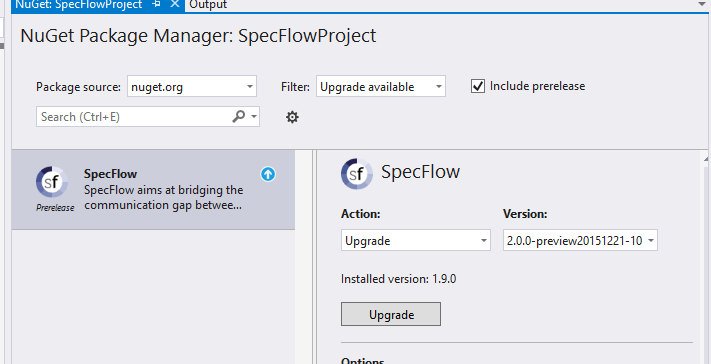 PM> Update-Package SpecFlow -IncludePrerelease
